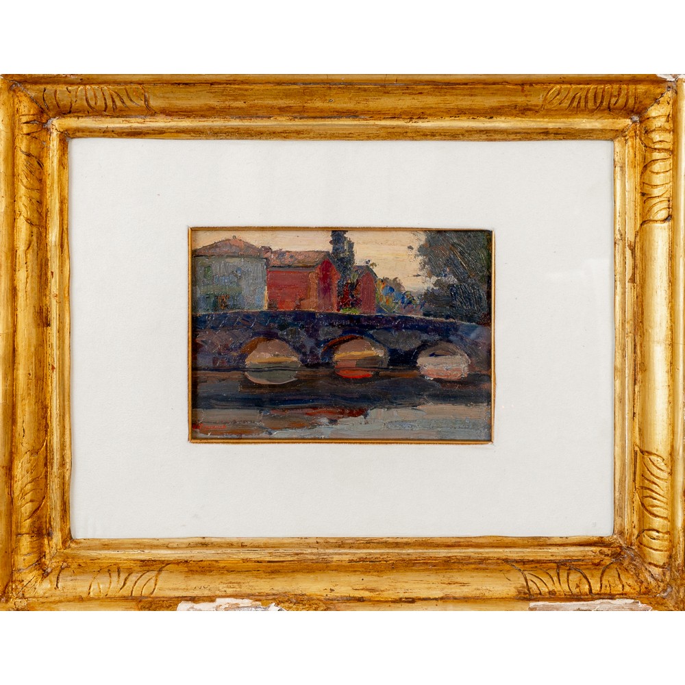 Paesaggio con case e ponte