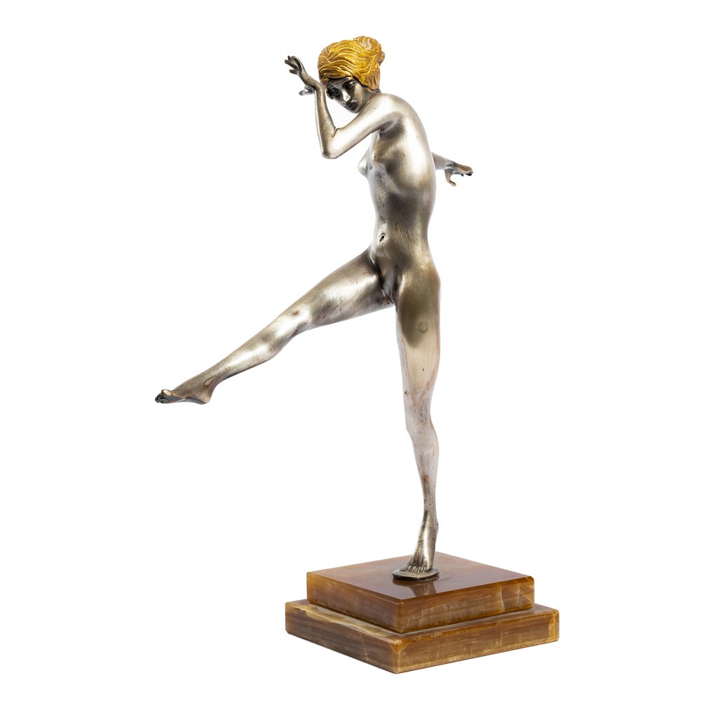 Scultura in bronzo argentato, base in onice raffigurante "Nudo".