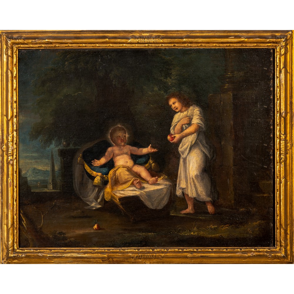 SCUOLA ITALIANA XVIII SEC Bambin Gesù ed angelo Olio