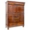 Chiffoniere Impero in legno di mogano e piuma di mogano con quattro cassetti sottostanti e due ante nella parte superiore.