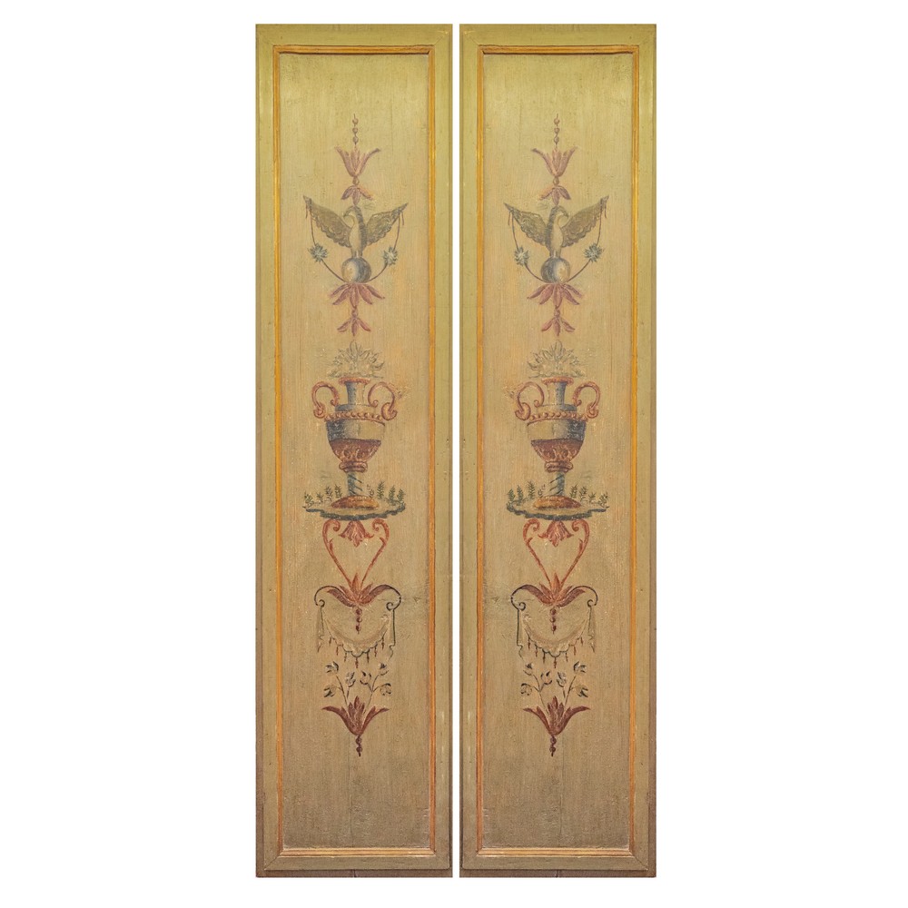 COPPIA PANNELLI stile neoclassico in legno laccato e dipinto.