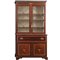 Bookcase Vittoriana in legno di mogano con tarsie in bosso ed acero, con due ante sottostanti, ribaltina centrale con cassettiera, e due ante sovrastanti.
