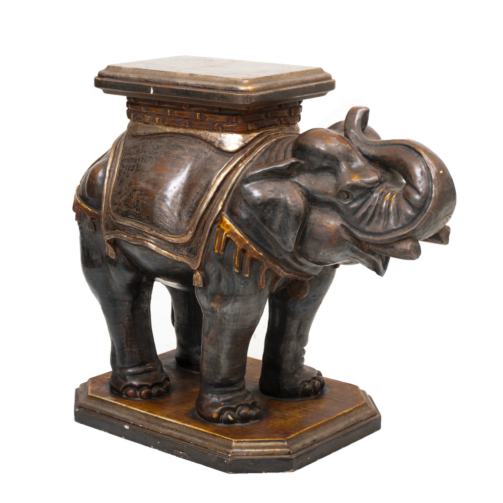 BASE in legno argentato e dorato raffigurante piccolo elefante.