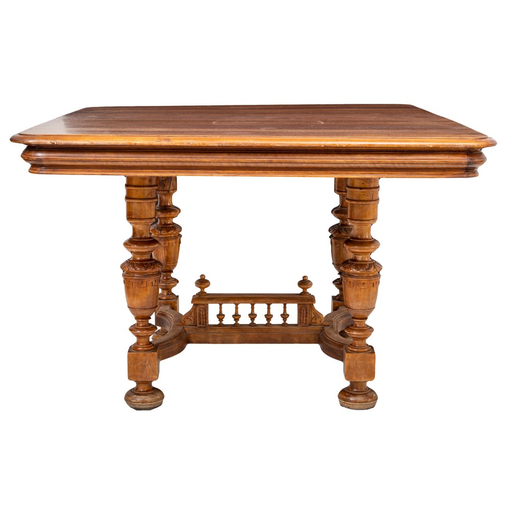 TAVOLO Enrico II in legno di noce con quattro prolunghi.