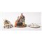 Gruppo in porcellana policroma raffigurante scena galante con all’interno un calamaio e calamaiera con campanella in bronzo e porcellana.