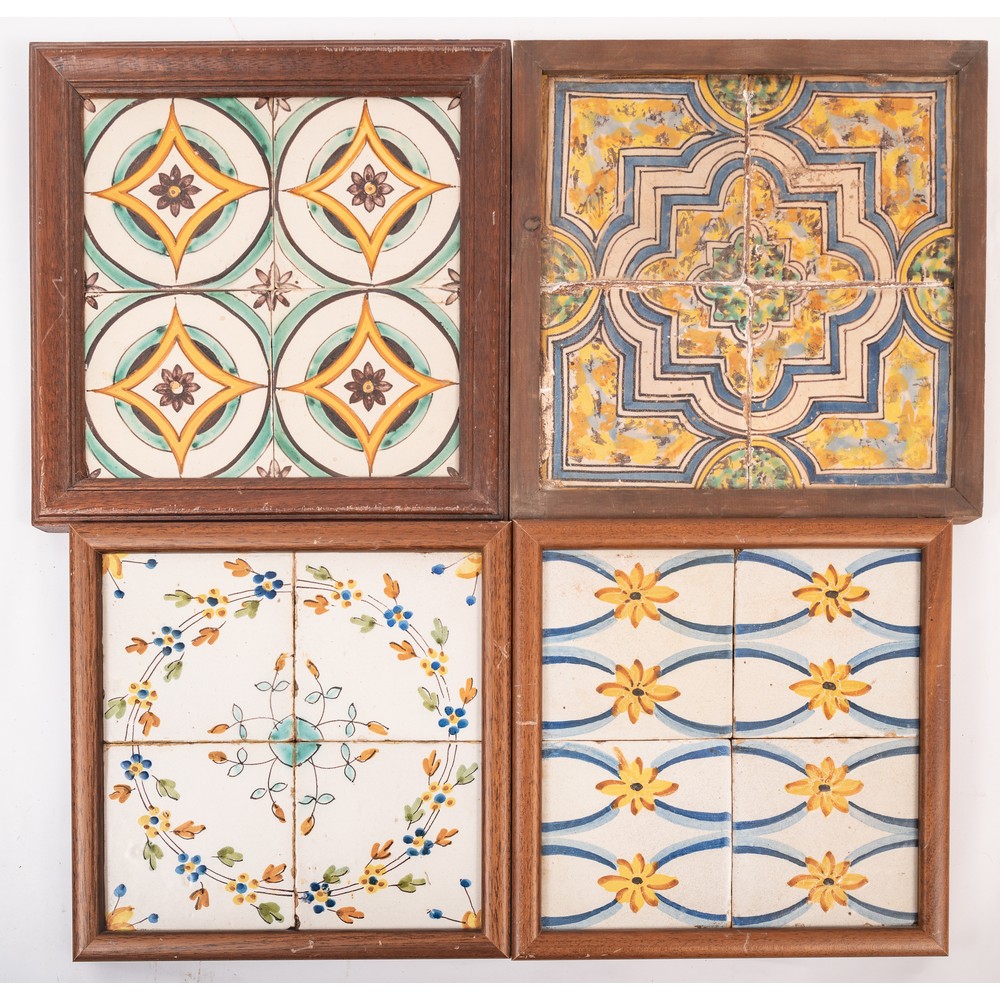 QUATTRO PANNELLI in ceramica smaltata e decorata.