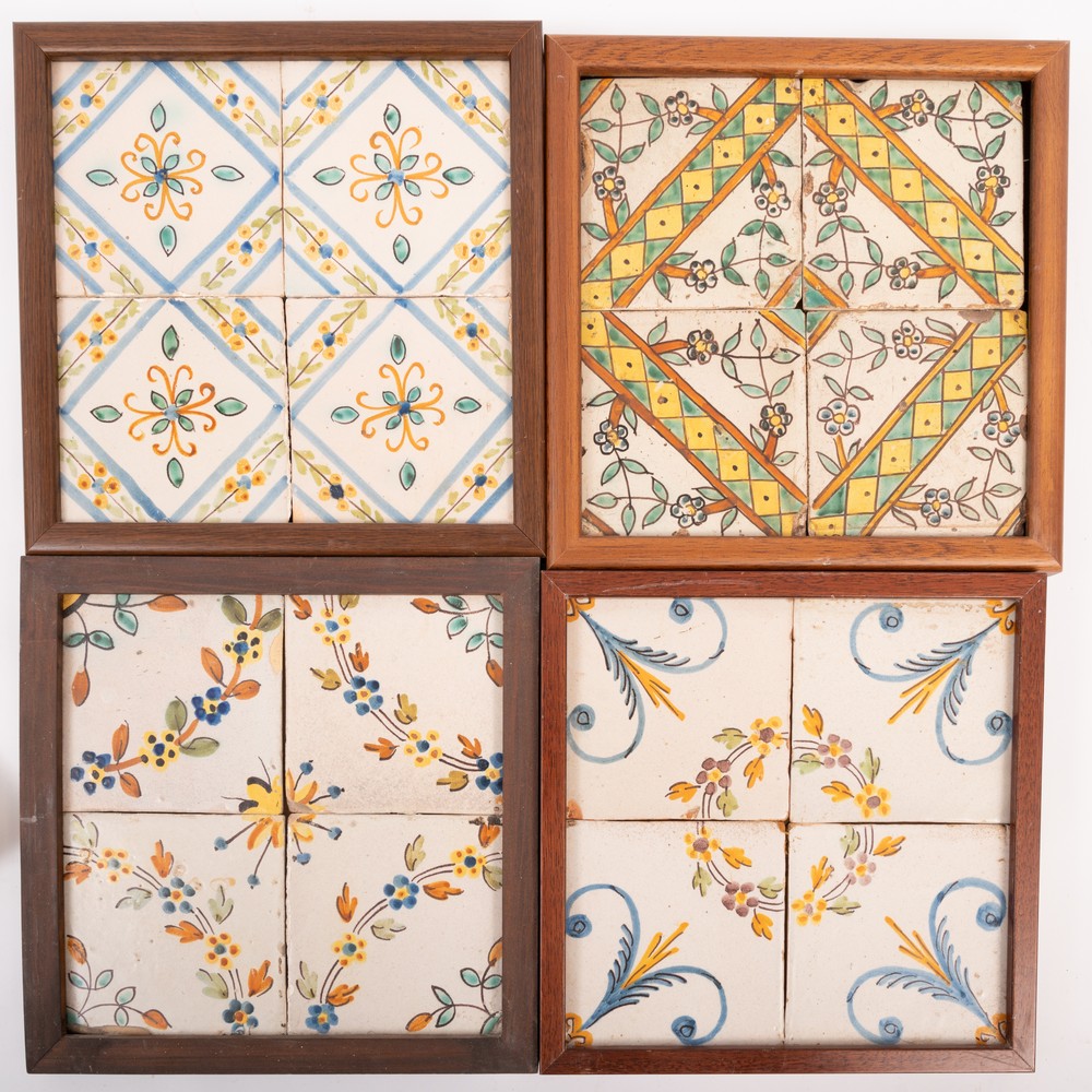 QUATTRO PANNELLI in ceramica smaltata e decorata.