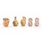 Coppia di piccoli albarelli fratelli Piscitello, Santo Stefano e due fiaschette porta olio in ceramica smaltata e decorata.