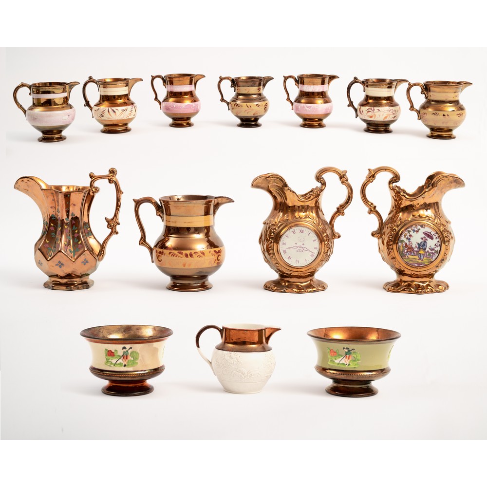 Collezione di dodici cannate e due ciotole in ceramica smaltata e decorata.