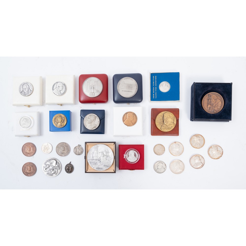 14 medaglie papali (si notano 5 di papa Giovanni XXIII e 2 di Benedetto XVI) e dei musei vaticani in Argento 925 (gr 525) e 11 medaglie commemorative varie.