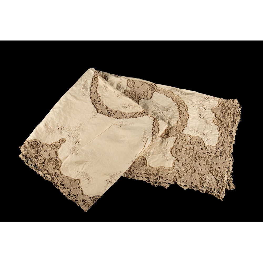 COPRITAVOLO in lino nei toni dell' ecrù con ricami a mano