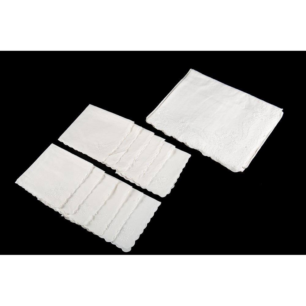 LENZUOLO matrimoniale con due federe in lino nei toni del bianco con ricami a mano.
