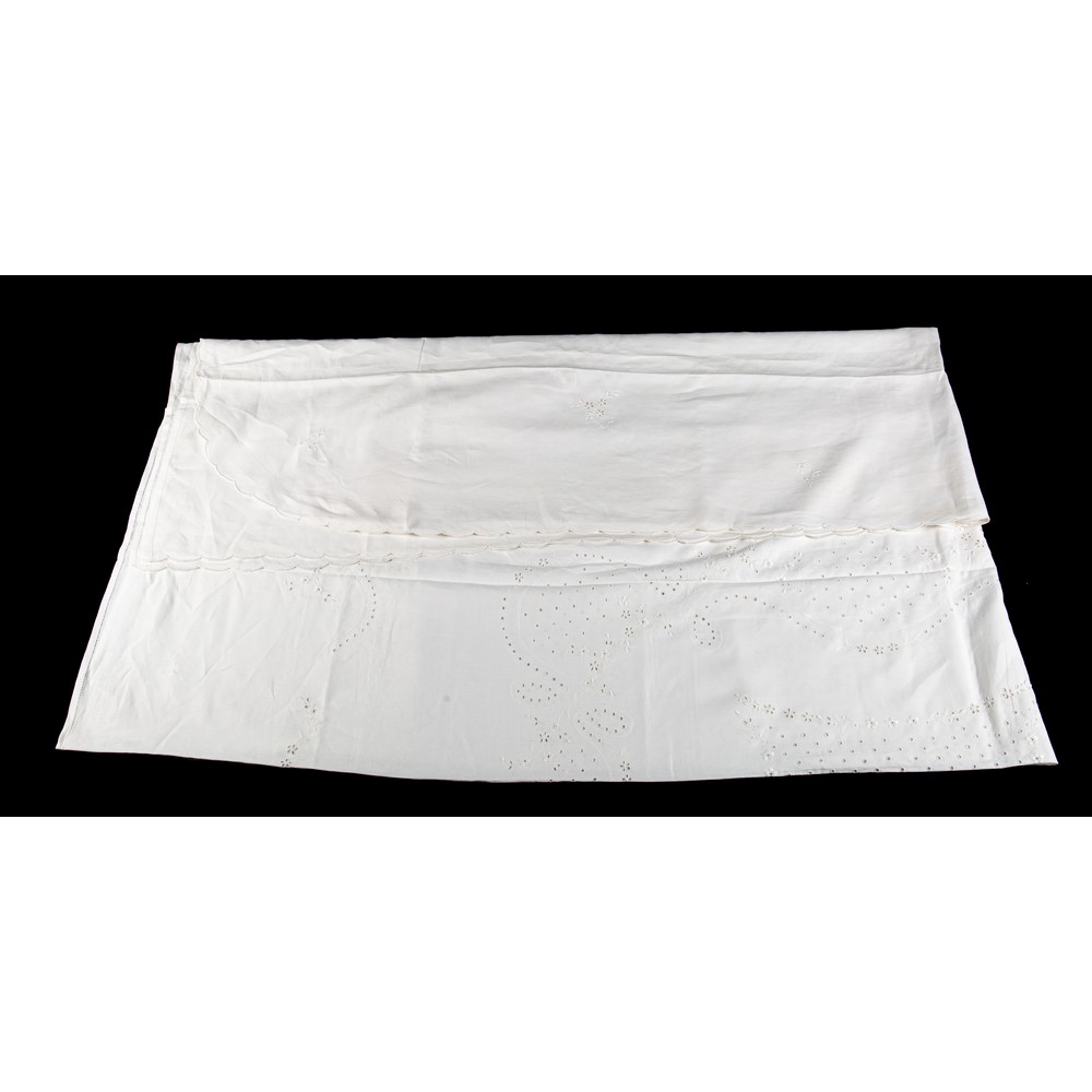 LENZUOLO matrimoniale con due federe in lino nei toni del bianco con ricami a mano.