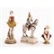 TRE SCULTURE in porcellana policroma raffigurante cavaliere firmata Cacciapuoti, ballerina marchio Capodimonte e mezzobusto di figura marchio alla base.