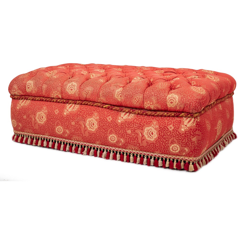 POUF in legno, tappezzeria ne toni del color salmone.
