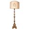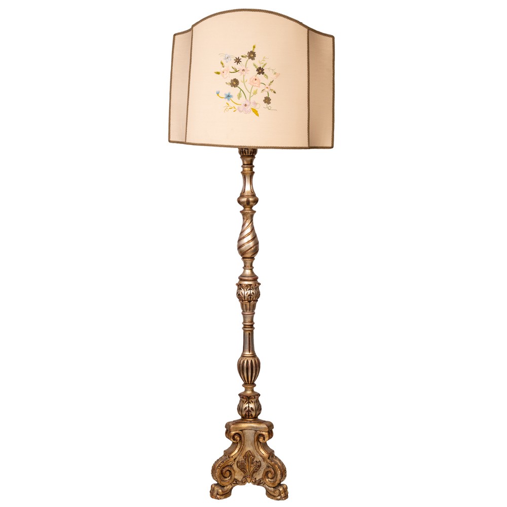 TORCERE in legno scolpito dorato e argentato con ventola ricamata.
