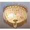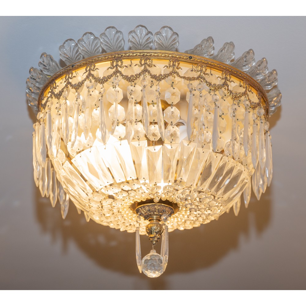 PLAFONIERA a tre luci in ottone, elementi vitrei e brindoli.