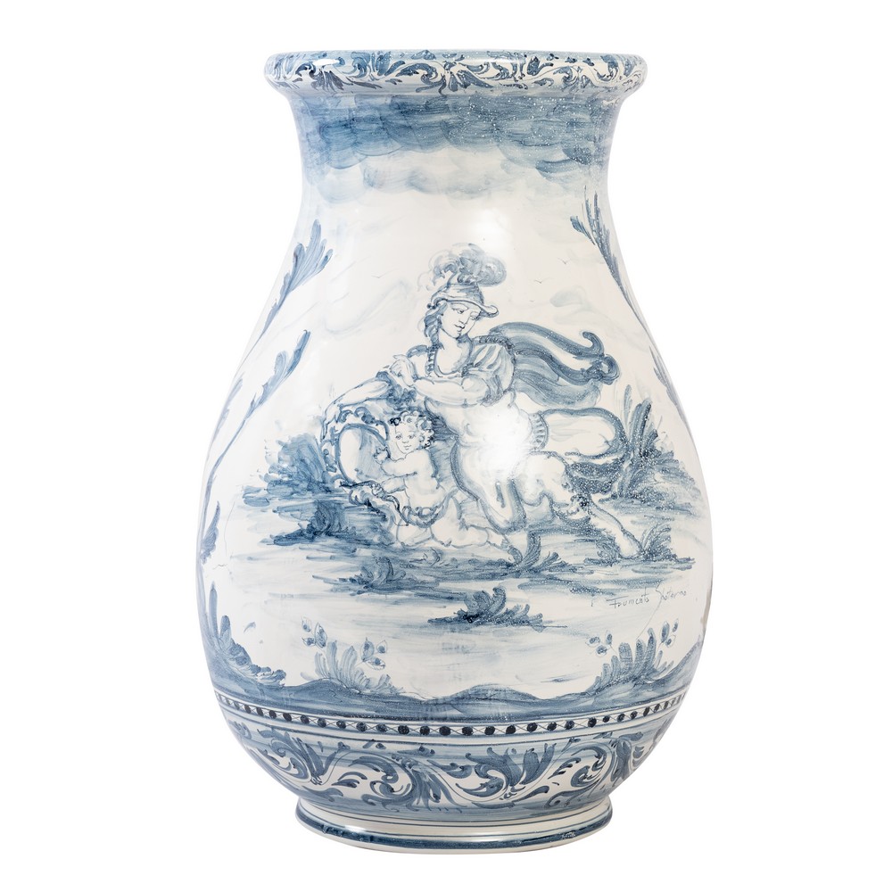 PORTAOMBRELLI in ceramica smaltata e decorata raffigurante paesaggio.