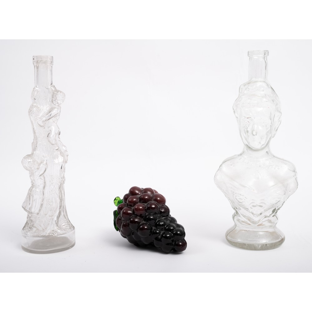 Lotto 802 | DUE BOTTIGLIE in vetro e grappolo d'uva in vetro di murano