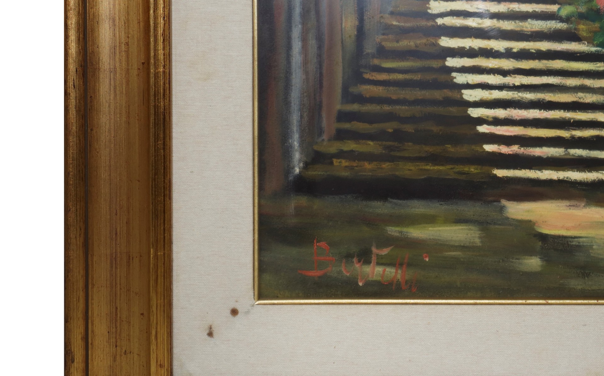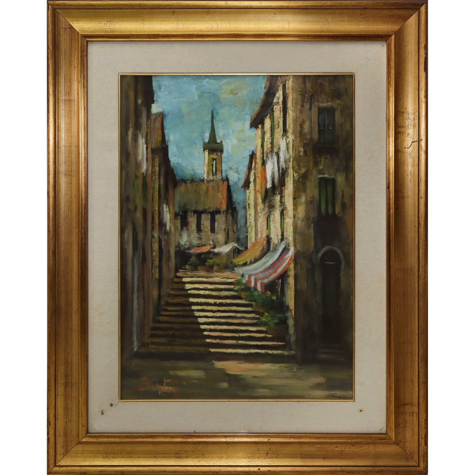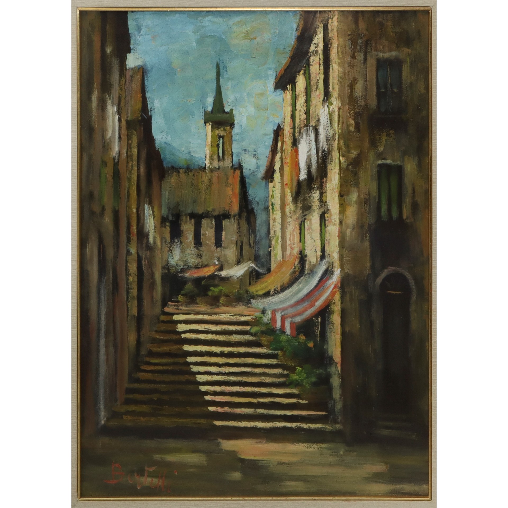 Luigi Bertelli (Bologna 1832-Bologna 1916) - Paesaggio con scalinata e chiesa H cm 70 x 49, in cornice H cm 101 x 80,5