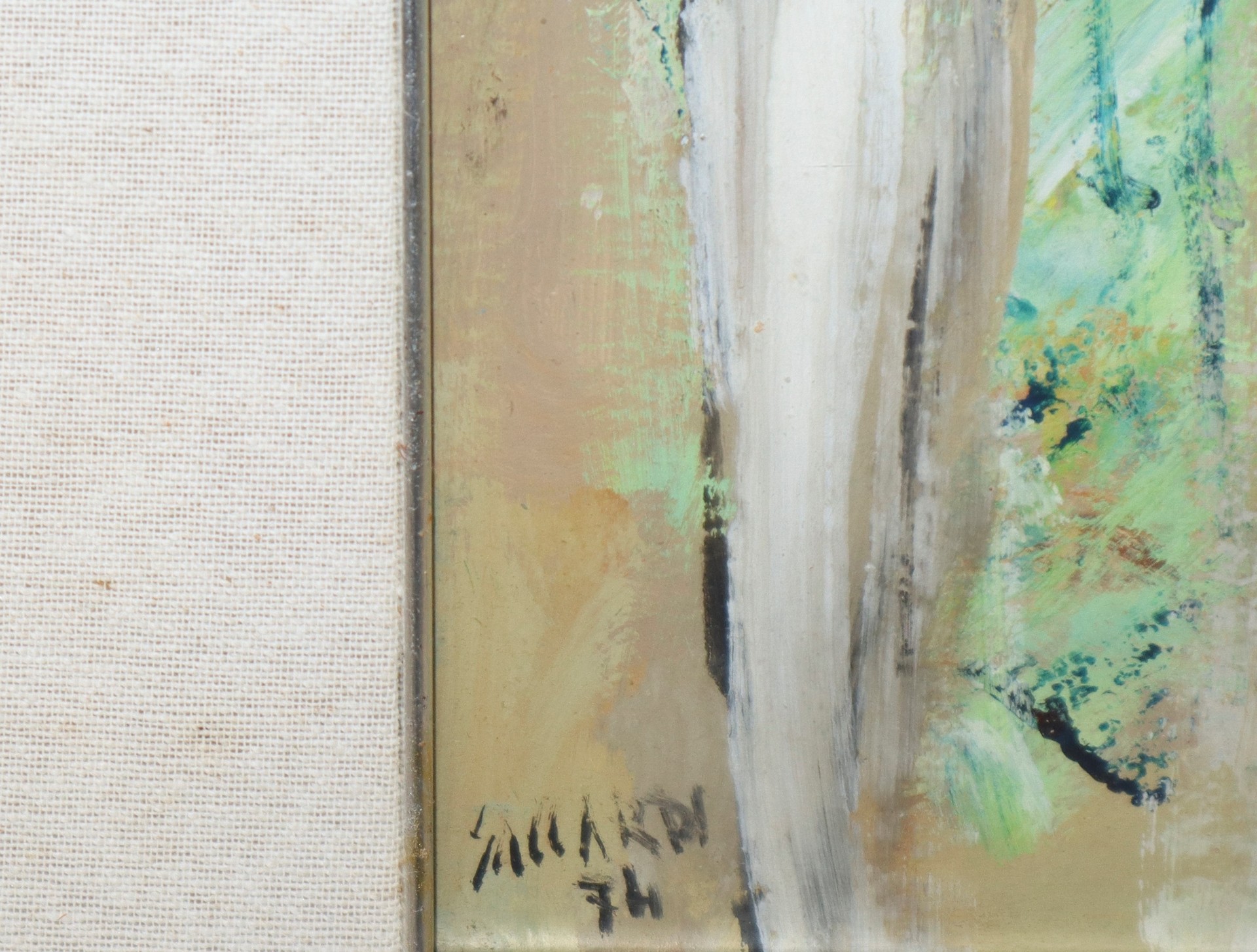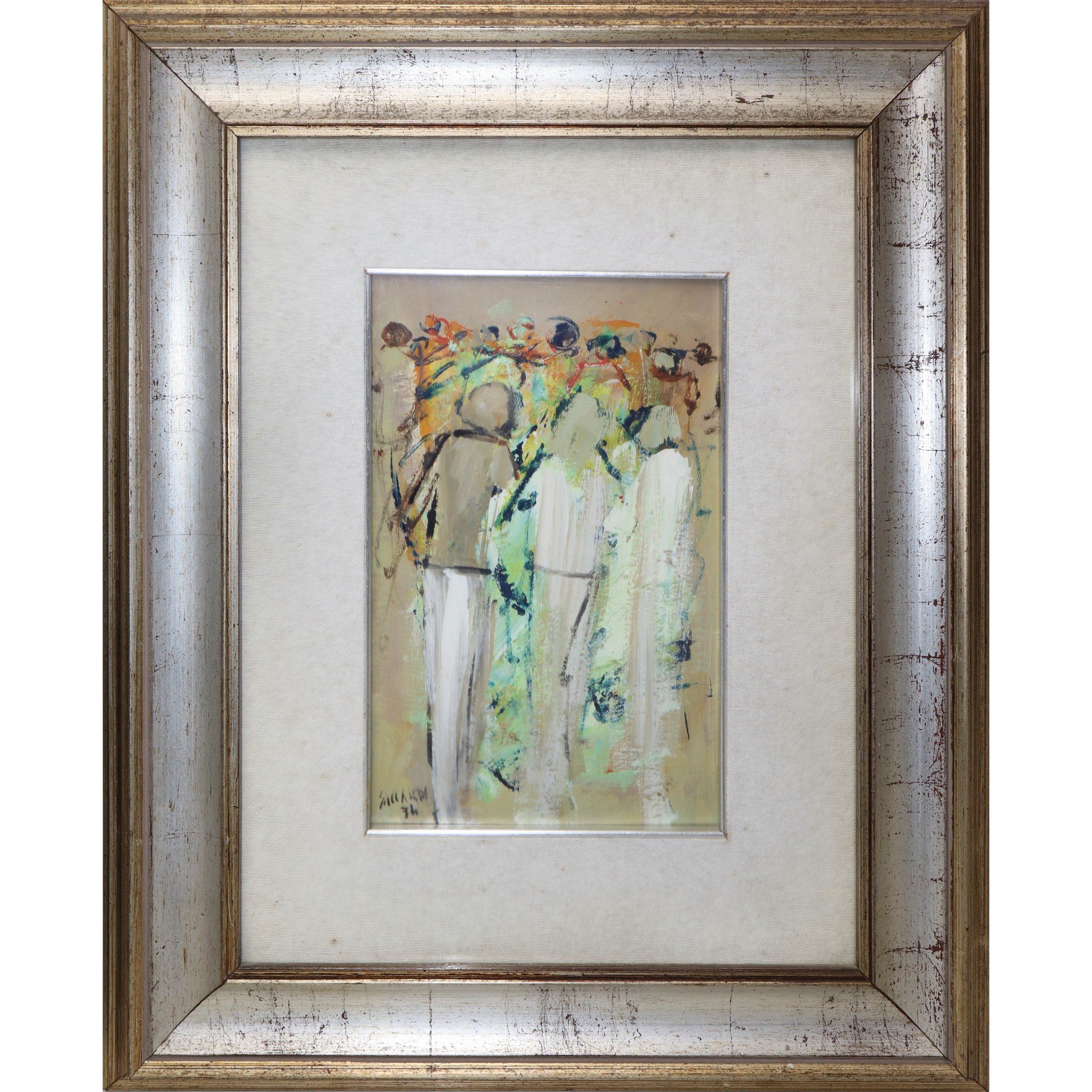 Carlo Saccardi (Montebello della Battaglia 1921-Milano 1997) - Personaggi Cm 30x20, in cornice cm 58x48 Dipinto ad olio su faesite Firmato in basso a sinistra e datato74