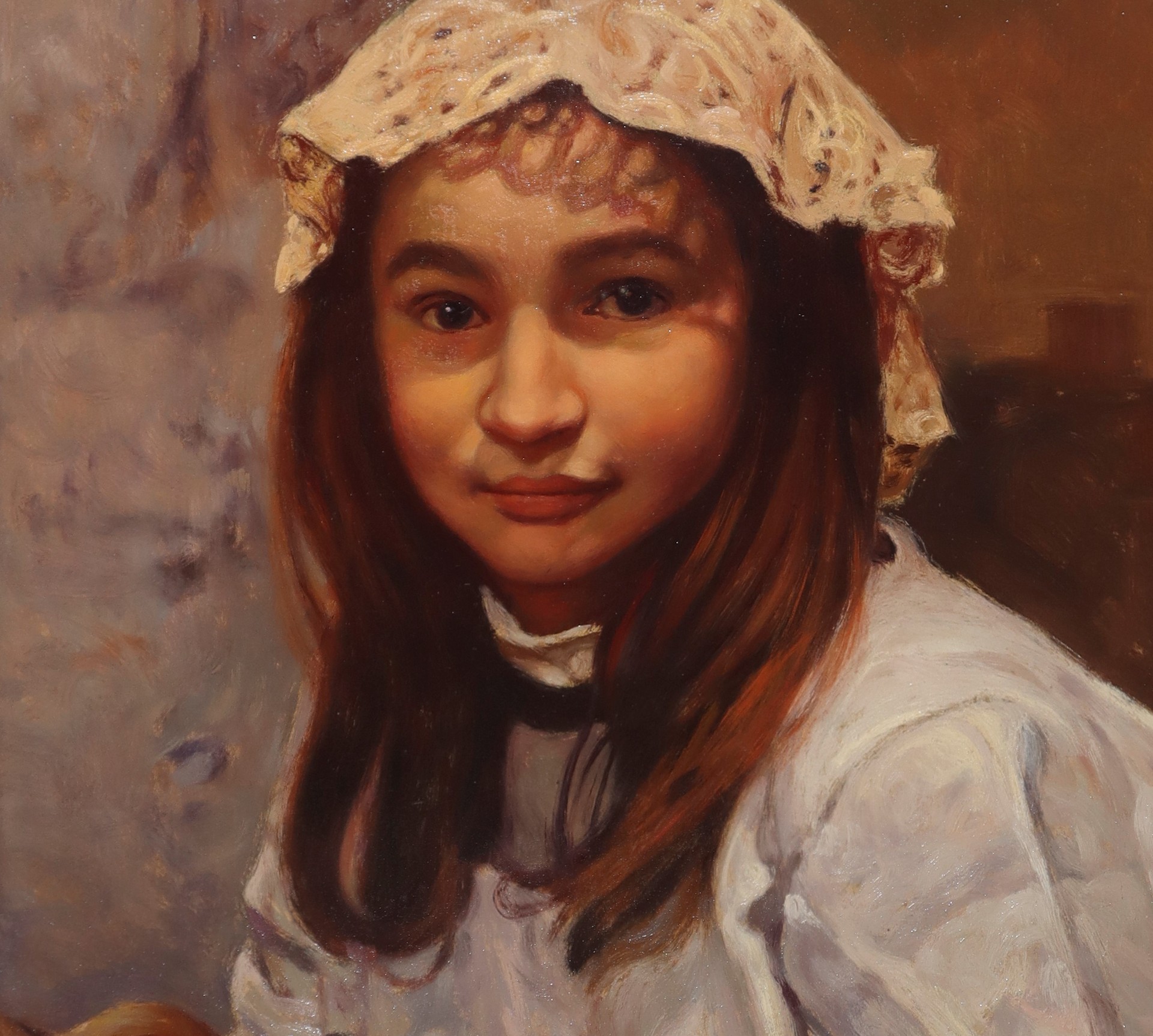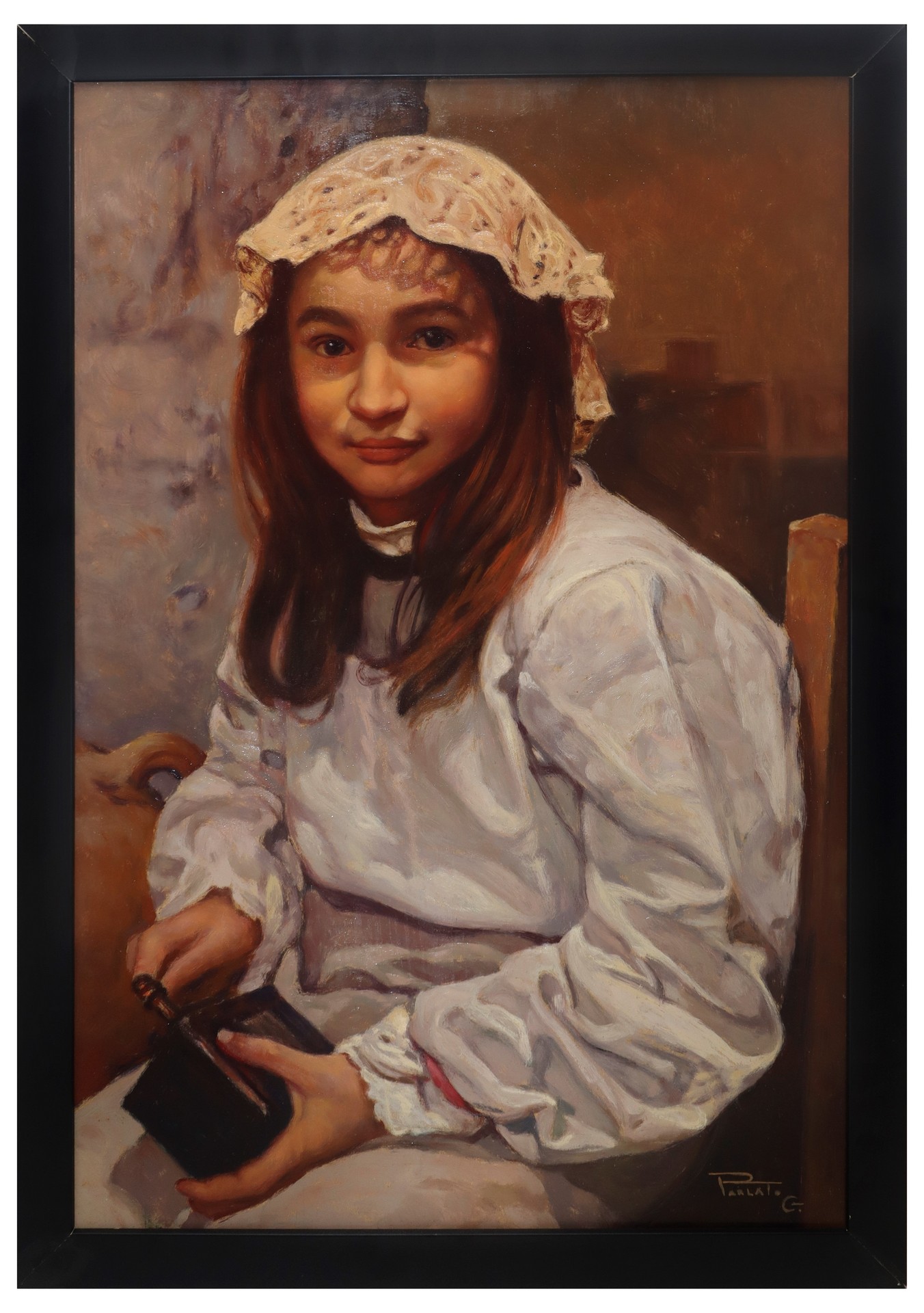 Giovanni Parlato (Vico Equense 1957) - Ritratto di ragazza con cuffietta ricamata