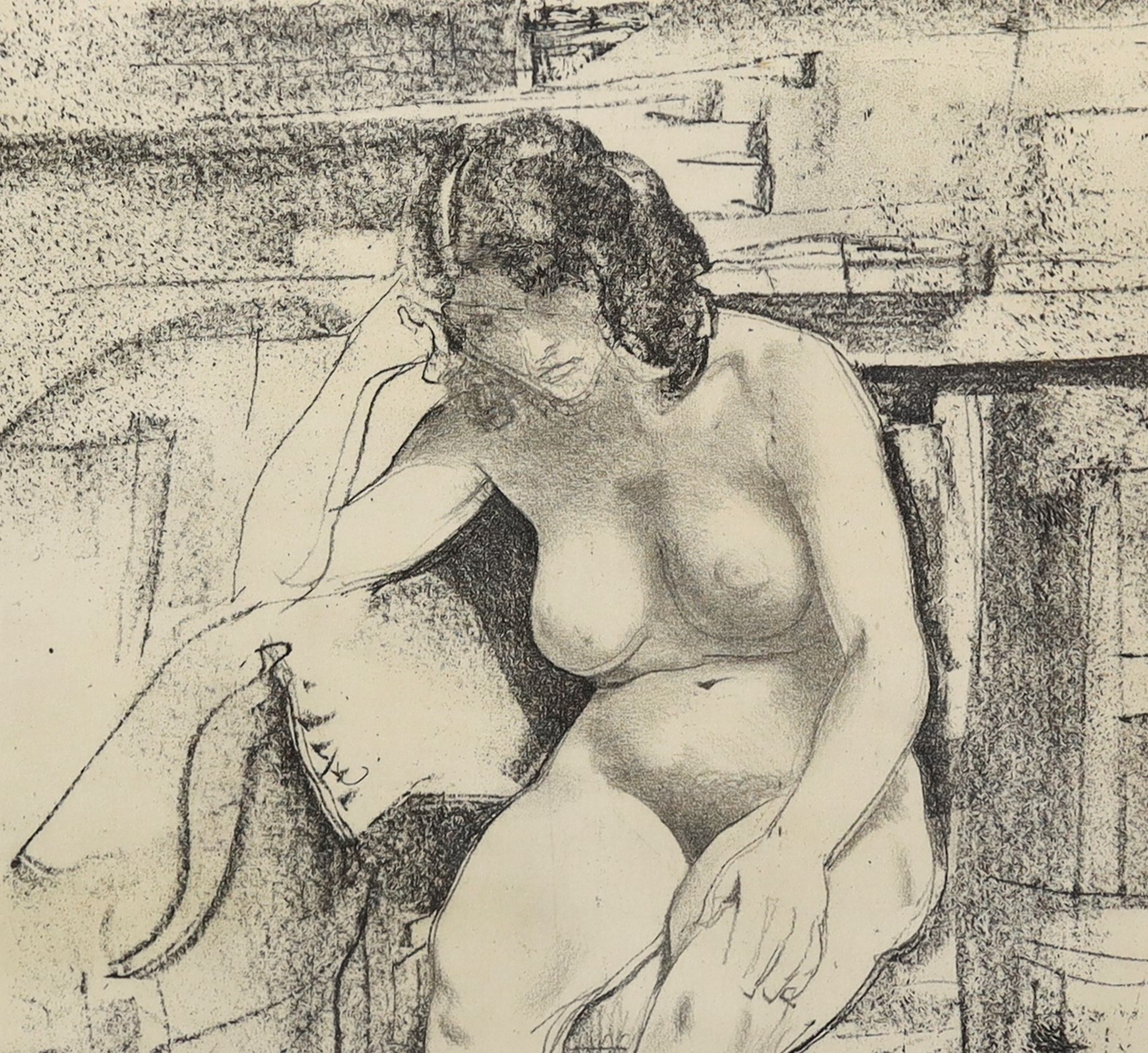 Pietro Annigoni (Milano 1910-Firenze 1988) - Modella in riposo H cm 86 x 68 , in cornice H cm 100 x 80 Incisione a cera molle Esemplare 18 di 100, firmato in basso a destra e numerato in basso a sinistra.