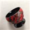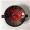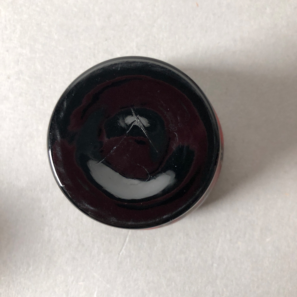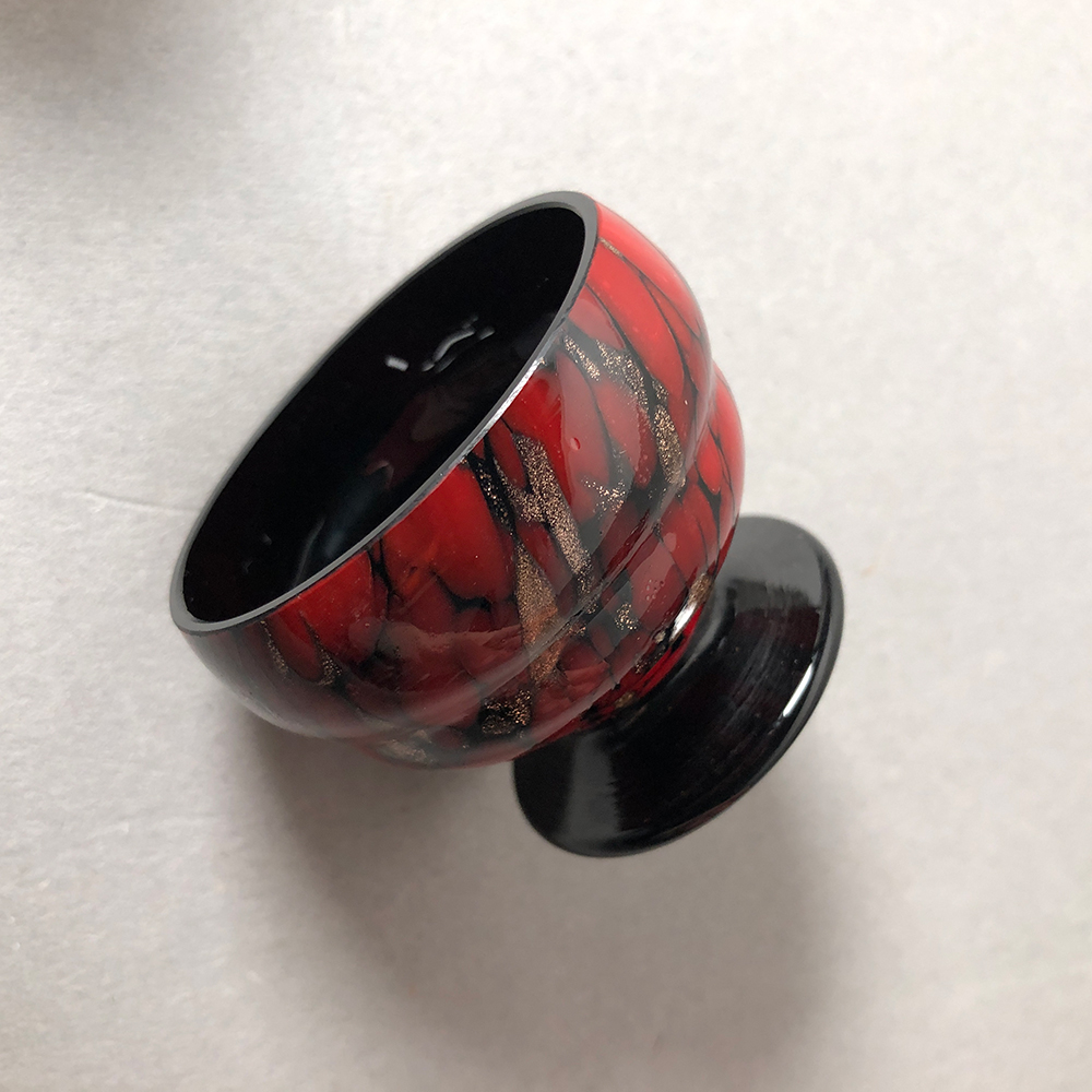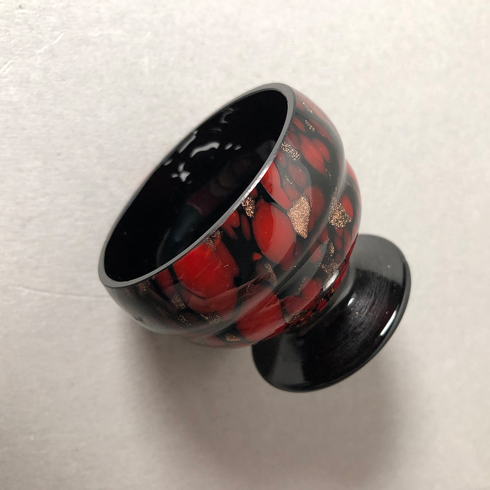 VINCENZO NASON, WEIL CERAMICS & GLASS COMPANY - Piccolo servizio in vetro nero decorato con avventurina e tocchi di rosso composto da: n. 4 bicchierini da liquore (altezza cm 4,6) n. 1 piattino.