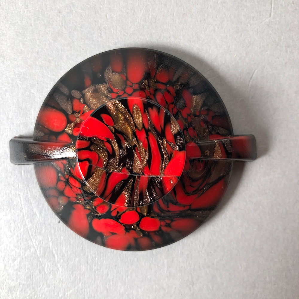 L’avventurina è tipo di vetro traslucido spruzzato su tutta la superificie di particelle brillanti di ossidi metallici, che imitano il quarzo avventurina, di colore brunastro con inclusioni di mica ed altri minerali. (...) Si dice che il nome “avventurina” derivi dal termine “per avventura”, “a caso” dovuto al fatto che questo procedimento si deve ad una scoperta accidentale. (H. Newman; P. V. Albonico, Dizionario del vetro, Garzanti, 1993)