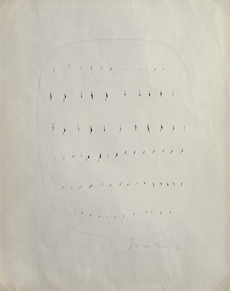 Lucio Fontana (Rosario di Santa Fè, 1899 - Comabbio, 1968) CONCETTO SPAZIALE, 1951 Matita e strappi su carta, cm. 33,5x26 Firma e data in basso a destra. Archiviato presso l’Archivio Lucio Fontana con il numero 2436/206.