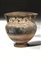 Materia e tecnica: argilla figulina rosata, ingubbiatura camoscio, vernice bruna, modellato a tornio veloce