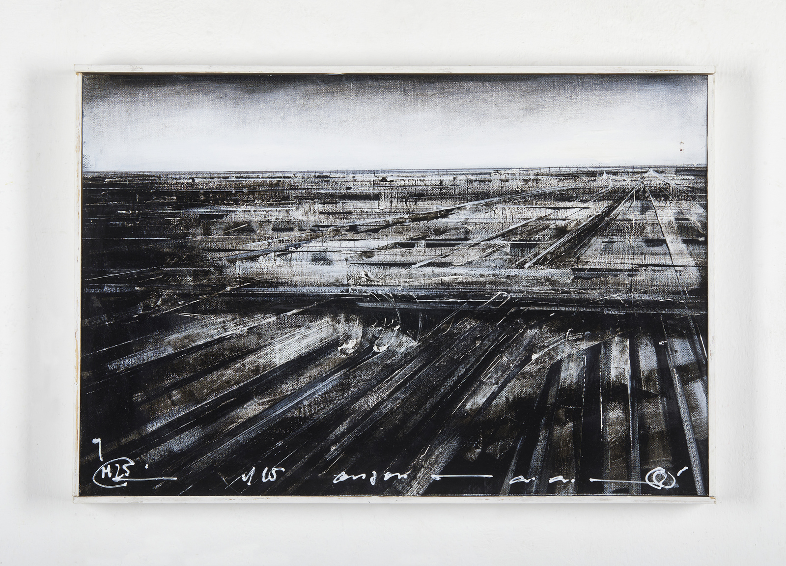 GUAITAMACCHI JONATHAN (n. 1961) M25. Olio su carta su tavola. Cm 45,00 x 30,00. Titolo e firma in basso e al retro. Autentica dell'artista su fotografia. Cornice presente