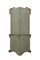 La parte sottostante è composta da corpo a due ante con quattro specchi al mercurio inquadrati entro due lesene dorate e dipinte in policromia.