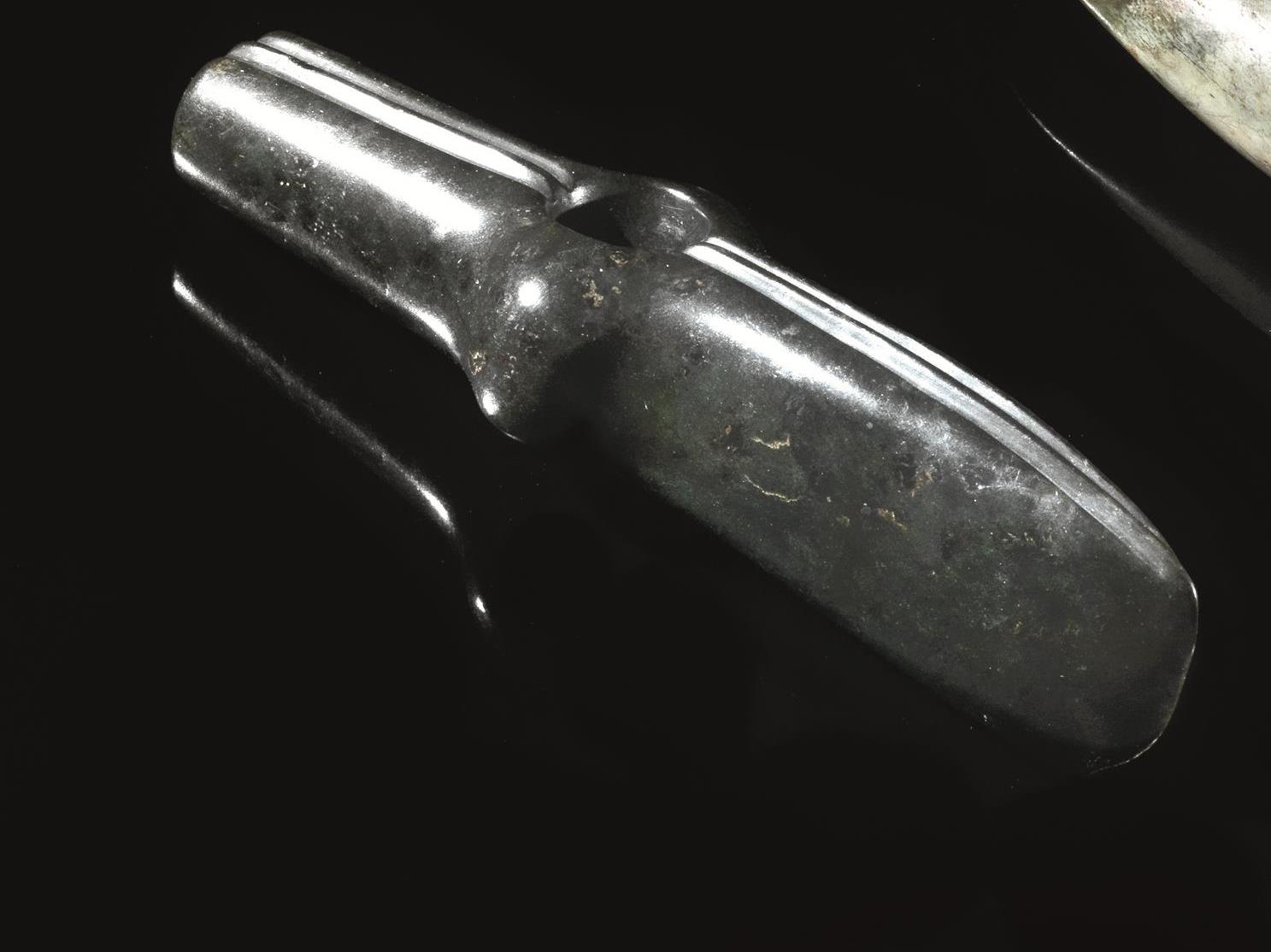 Lotto 134 | Rara ascia martello in serpentinoMateria e tecnica: serpentino scolpito e...