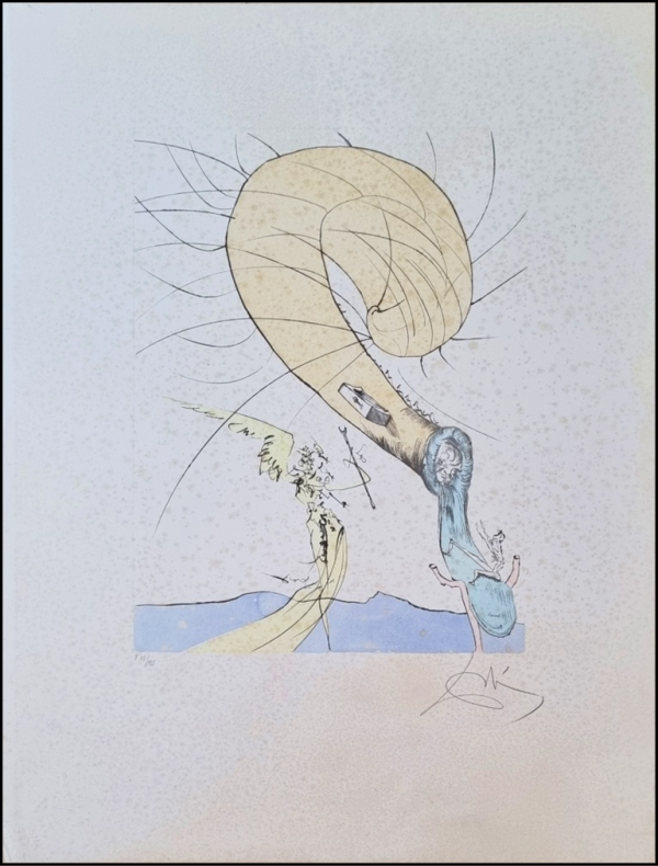 DALI' SALVADOR Spagna 1904 - 1989 "Senza titolo" Acquaforte su cartoncino cm 50x70. Firmata sul fronte in basso a destra, tiratura 15/195 a sinistra. (Presenta fioriture).