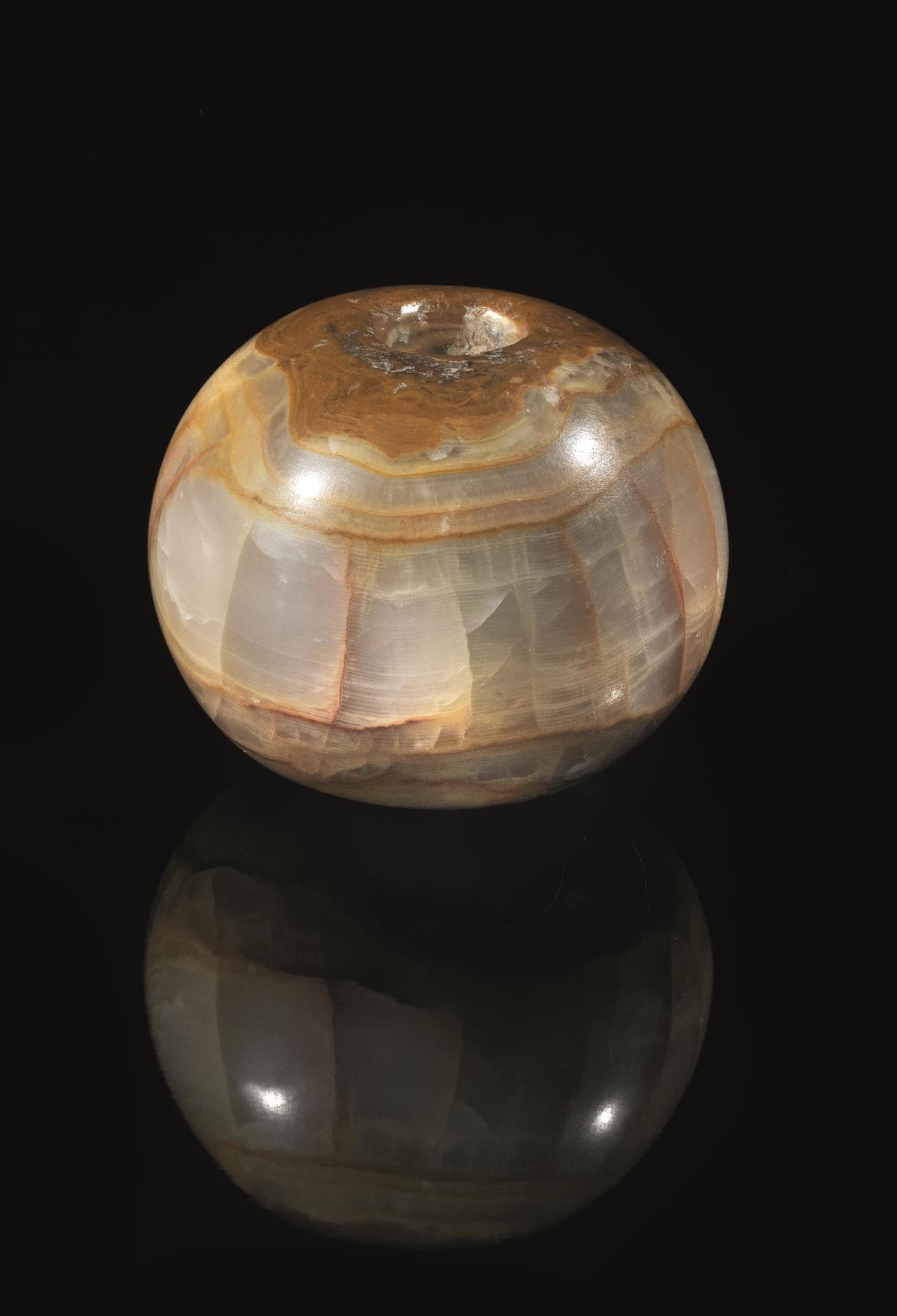 Testa di mazzaMateria e tecnica: alabastro striato scolpito e levigatoTesta...