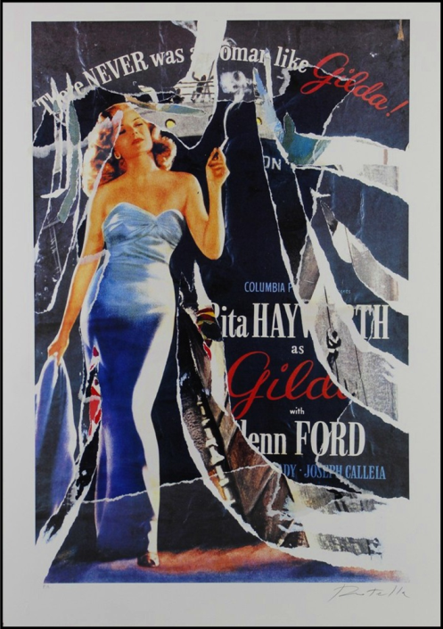ROTELLA MIMMO Catanzaro 1918 - Milano 2006 "Gilda" Multiplo décollage e strappi di manifesto su supporto serigrafico su cartoncino cm 70x100, del 2000-2009. Firmato sul fronte in basso a destra, tiratura P.A. Opera pubblicata sul catalogo "Mimmo Rotella Multiples décollage".