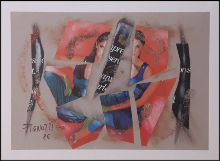 PIGNOTTI LAMBERTO Firenze 1926 "Senza titolo" Tecnica mista e collage su cartoncino cm 50x35 del 1986. Firmato e datato sul fronte in basso a destra. Opera pubblicata a pag. 262 del catalogo "Poesia visiva" 5 maestri 1963-1988.