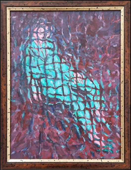 AVANZI PAOLO Rovigo 1958 "Donna sdraiata in abito verde" Acrilico su tela cm 30x40 del 2023. Sul retro titolo, tecnica, misure, anno e timbro dello studio dell'artista. Certificato di autenticità a cura dell'artista.