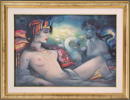 VULIC JOVAN Jugoslavia 1951 "Senza titolo" Olio su tela cm 70x50. Firmato sul fronte in basso a sinistra. Sul retro timbro. (Opera incorniciata presenta lievi difetti)