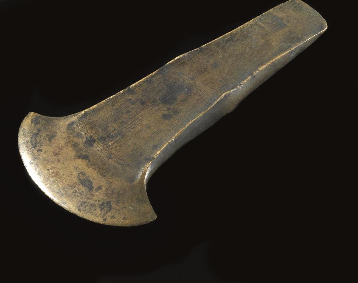 Ascia in bronzo Materia e tecnica: bronzo fuso e cesellatoAscia con margini...