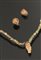 Lotto 182 | Collana e orecchini Materia e tecnica: lamina d’oro, radice di turchese Una...