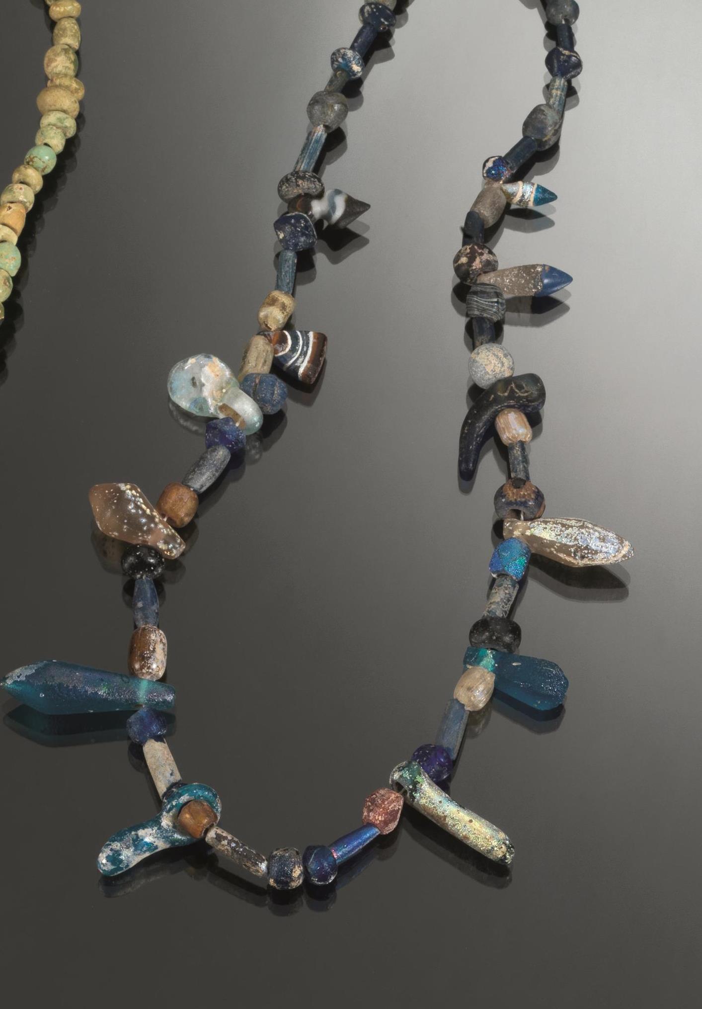 Due collane e un pendente Materia e tecnica: pasta vitrea, oro, osso e...