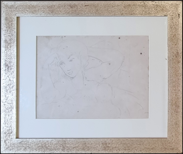 SASSU ALIGI Milano 1912 - Spagna 2000 "L'annoiata" Matita su carta cm 49x35 del 1961. Firmata sul fronte in basso a destra, sul retro data e titolo. (Presenta fioriture).