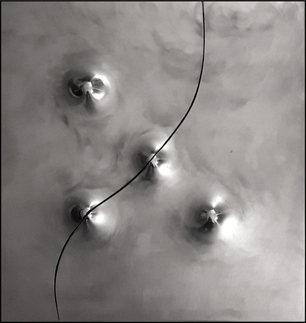 BRESCIANINI ANGELO Brescia 1948 - 2016 "N. 4 spari di fucile calibro 12" Su lastra di acciaio cm 48x48, peso kg 10, del 2008. Sul retro firmata e datata. Autentica su due foto fronte e retro.