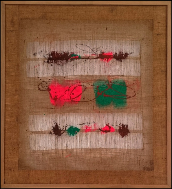 EMBLEMA SALVATORE Terzigno 1929 - 2006 "Senza titolo" Terra colorata su tela di juta cm 90x100 del 2004. Certificato di autenticità su foto a cura dll'artista. Certificato di autenticità a cura di "Cagnola".