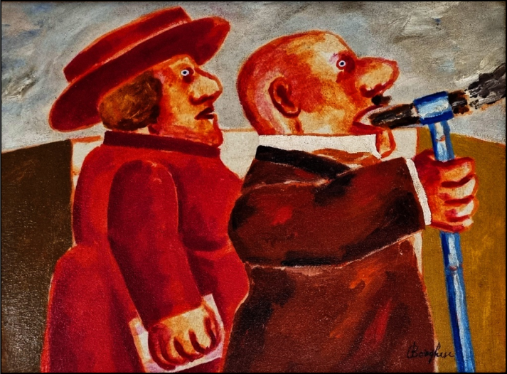 BORGHESE FRANZ Roma 1941 - 2005 "Il fumatore" Olio su tela cm 40x30. Firmato sul fronte in basso a destra. Sul retro firma e timbro della Galleria Principe di Piemonte. Autentica su foto a cura del maestro, con timbro a secco e numero d'archivio. Dichiarazione di vendita della Galleria Spagnoli e certificato di autenticità.