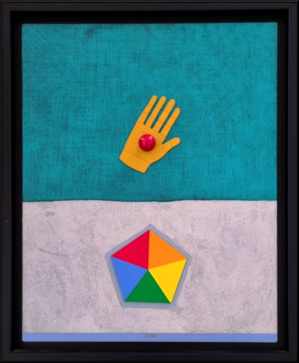 DEL PEZZO LUCIO Napoli 1933 - Milano 2020 "Una nota dal profondo" Collage, acrilico, sabbia e smalto su legno cm 60x75, degli anni '90. Sul retro reca titolo, firma, tecnica e misure. Autentica su fotografia a cura dell'artista.
