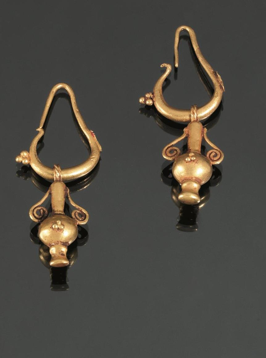 Coppia di orecchini Materia e tecnica: oro fuso Coppia di orecchini a...