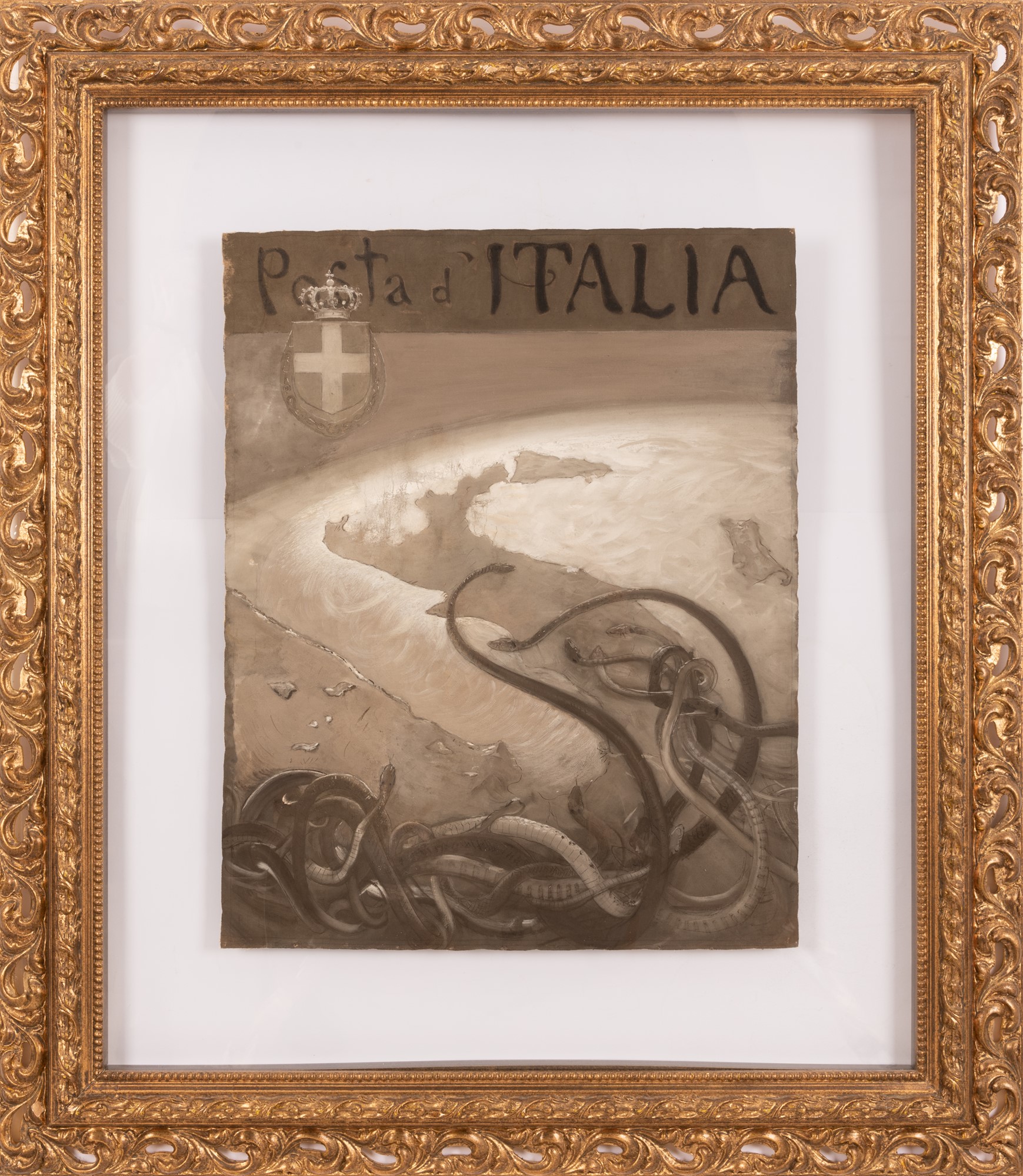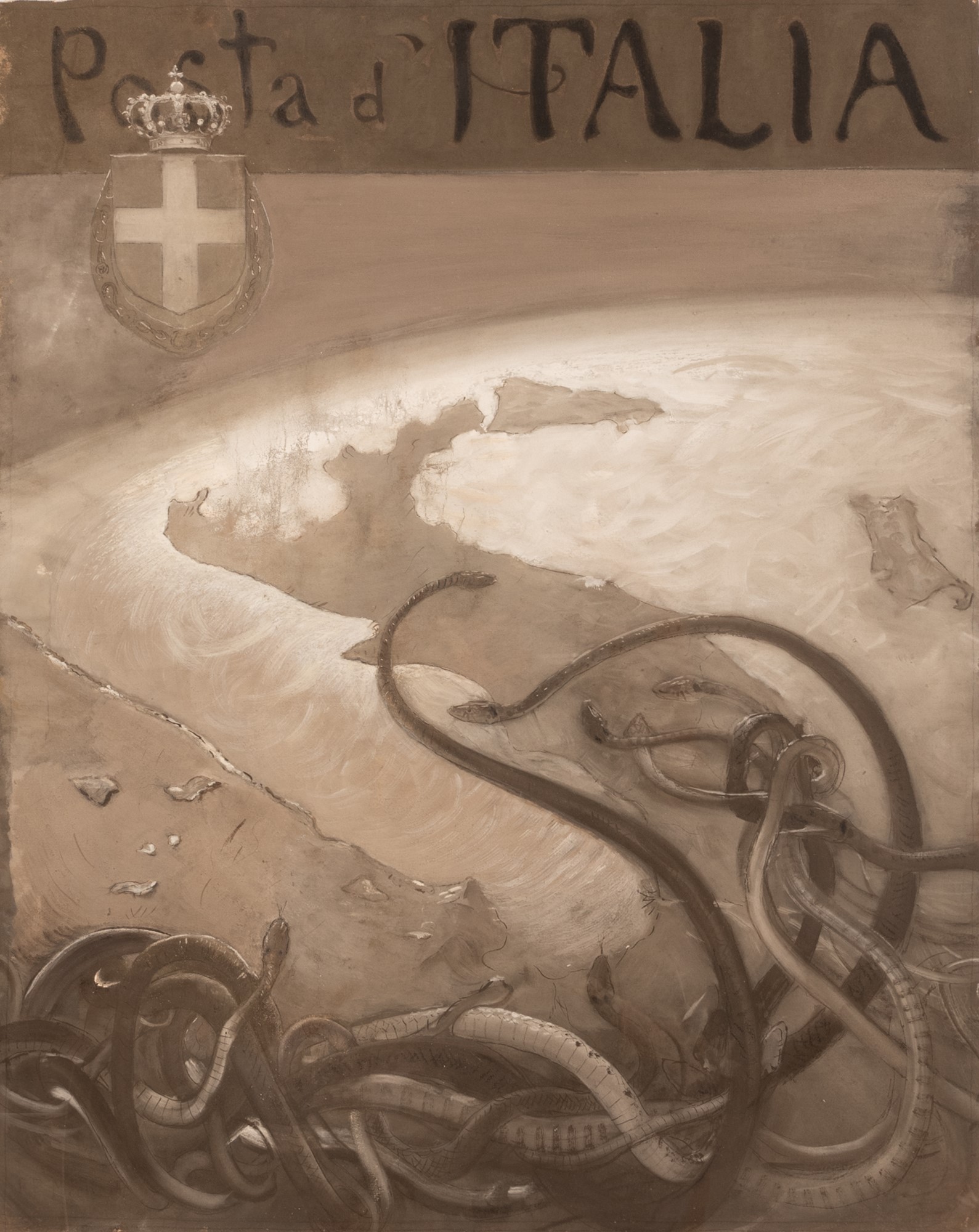 Bozzetto per Posta d'Italia "Serpenti che inghiottono l'Italia" 1903
